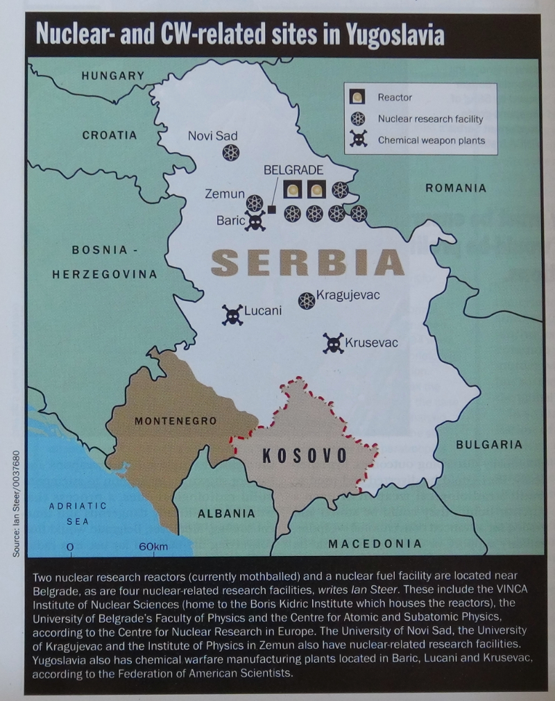 Steer, Ian, in Yugoslav uranium remains a cause for Western concern, Koch, Andrew, Jane’s Intelligence Review, June 1999, p. 11-13 (p. 12)